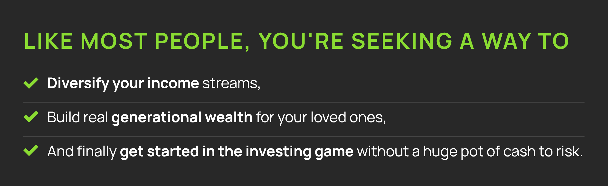 …without risking your life savings, taking out crippling loans, or dealing with demanding tenants? A simple, scalable system that doesn't require millions in startup capital, years of grinding, or even leaving your house!
